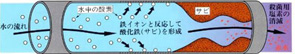 サビは水中に含まれる溶存酸素類を取り込み成長していきます。